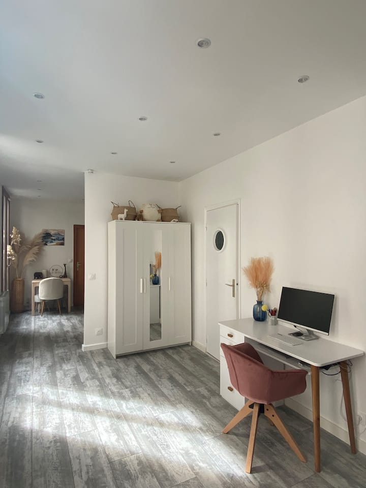 Izba s Wi-Fi, ktorá je vhodná na prácu.