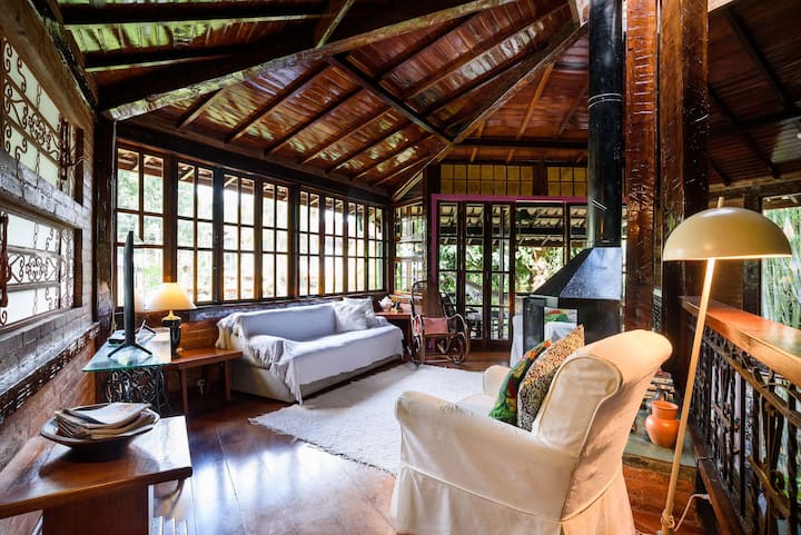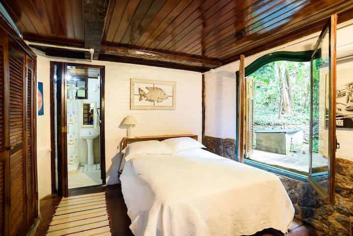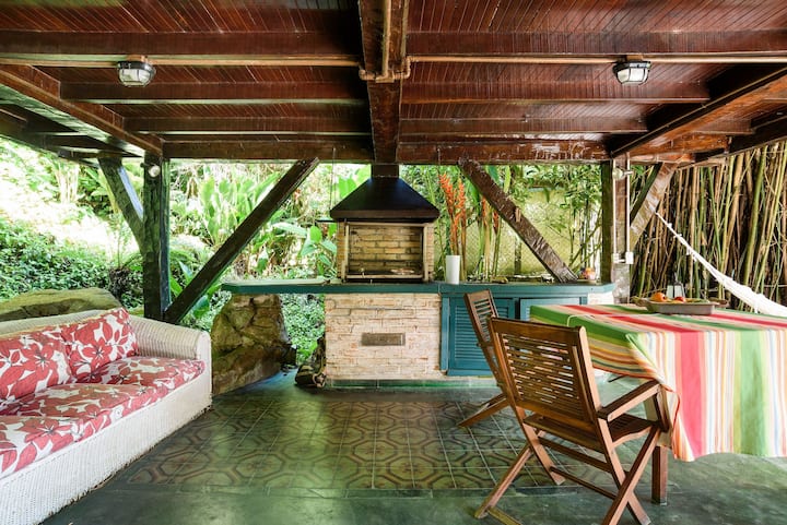 Dom má rustikálny a čistý štýl, ktorý kombinuje masívne drevo, odkryté tehly a veľké okná, ktoré ponúkajú očarujúci výhľad na okolitú prírodu. Všetky spálne sa nachádzajú len 5 minút chôdze od vchodu na pláž a sú vybavené klimatizáciou a zatemňovacími závesmi pre maximálne pohodlie. Dom má obývaciu izbu s krbom, TV miestnosť, rýchle Wi-Fi, 220V zásuvky, plne vybavenú kuchyňu a 4 spálne (1 apartmán). Vonkajší priestor sa môže pochváliť bujnou vegetáciou, krásnou vírivkou a gurmánskym priestorom s grilom. K dispozícii je parkovisko pre 2 autá a práčovňa s práčkou. Poskytujeme plážové stoličky, slnečník, posteľnú bielizeň a uteráky. Domáce zvieratá sú vítané za poplatok 150 R$ za domáce zviera. Dôveryhodná upratovačka žije v objekte a môže ponúknuť upratovacie a kuchynské služby za 250 R$ za deň alebo si môžete dohodnúť balíček priamo s ňou. Ideálne pre tých, ktorí hľadajú pokoj, pohodlie a blízkosť k prírode.