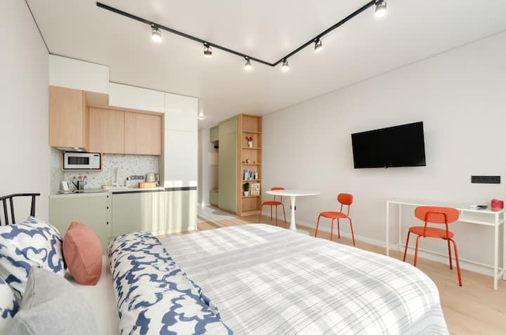Útulné štúdio v blízkosti stanice metra Boryspilska