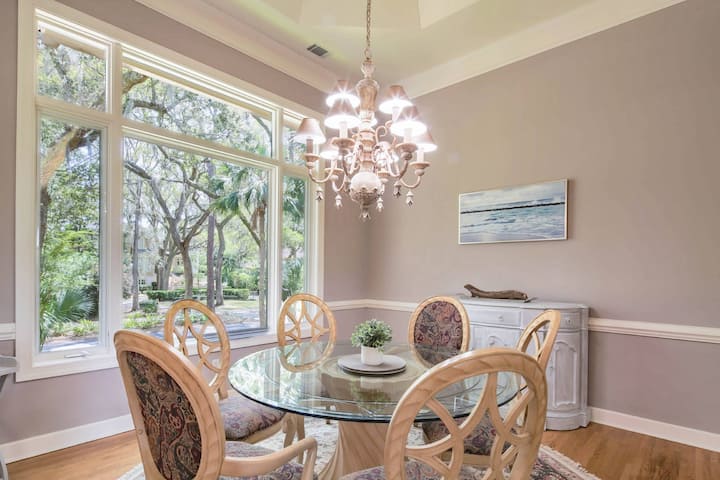 So svojimi viacerými priestormi na posedenie vo vnútri a vonku domu a otvoreným pôdorysom medzi kuchyňou, obývacou izbou a jedálenskými priestormi umožňuje členom vašej skupiny tráviť čas spolu a zároveň im poskytnúť možnosť relaxovať sami alebo v malých skupinách. Vaše deti si zamilujú súkromný bazén a bonusovú izbu na druhom poschodí s poschodovou posteľou, sekčnou pohovkou a stolom na hranie hier. Rezervujte si toto pohodlné bývanie na ostrove Hilton Head Island ešte dnes, pretože nebude k dispozícii dlho!