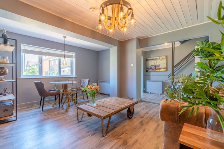 Po niekoľkých-mesačnom projekte obnovy sme nadšení, že vám môžeme ponúknuť možnosť oddýchnuť si a oddýchnuť si v tomto pokojnom, štýlovom a priestrannom priestore. Táto nehnuteľnosť bola premyslene zrekonštruovaná, aby predstavila luxusný rustikálny dekor a ručne vyrábané prvky v celom objekte.