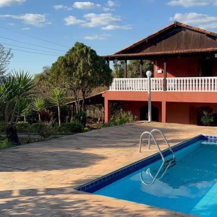 Krásny vidiecky dom s bazénom.