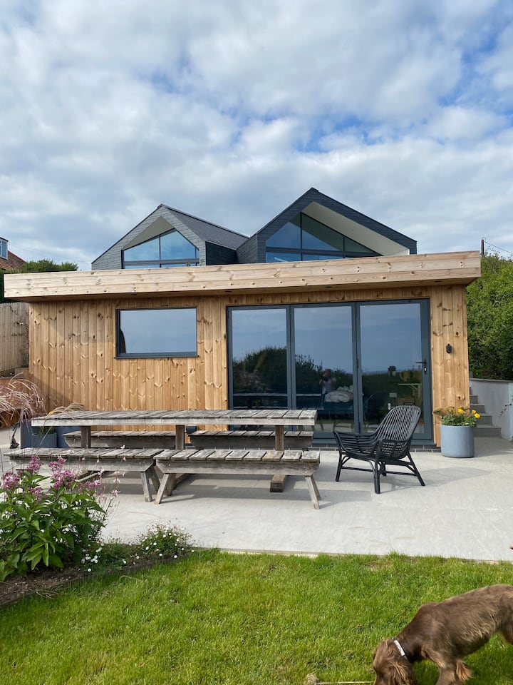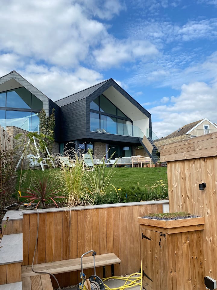 Moderný dom na pláži v Dorsete s vírivkou a saunou