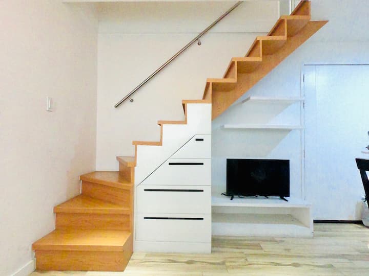 ÚTULNÁ LOFTOVÁ JEDNOTKA 2BR má skromný štýl, ale je plne vybavená všetkým, čo môžete potrebovať na pohodlný pobyt. Ponúka dve spálne. Jedna manželská posteľ Queen s posteľnou bielizňou, v ktorej sa môžu ubytovať až dvaja hostia. A jedna samostatná posteľ s posteľnou bielizňou pre jedného hosťa. Má pohovku, klimatizáciu, jedálenský stôl, chladničku, mikrovlnnú rúru, rýchlovarnú kanvicu, varič ryže, indukčný sporák, sprchovací kút, práčku, televízor s Netflixom a WI-FI pripojenie. K dispozícii je WC a sprchovací kút na druhom poschodí vybavené toaletnými potrebami a ďalšie potreby, aby Váš pobyt ešte pohodlnejšie. Toaleta/práčovňa na prvom poschodí.