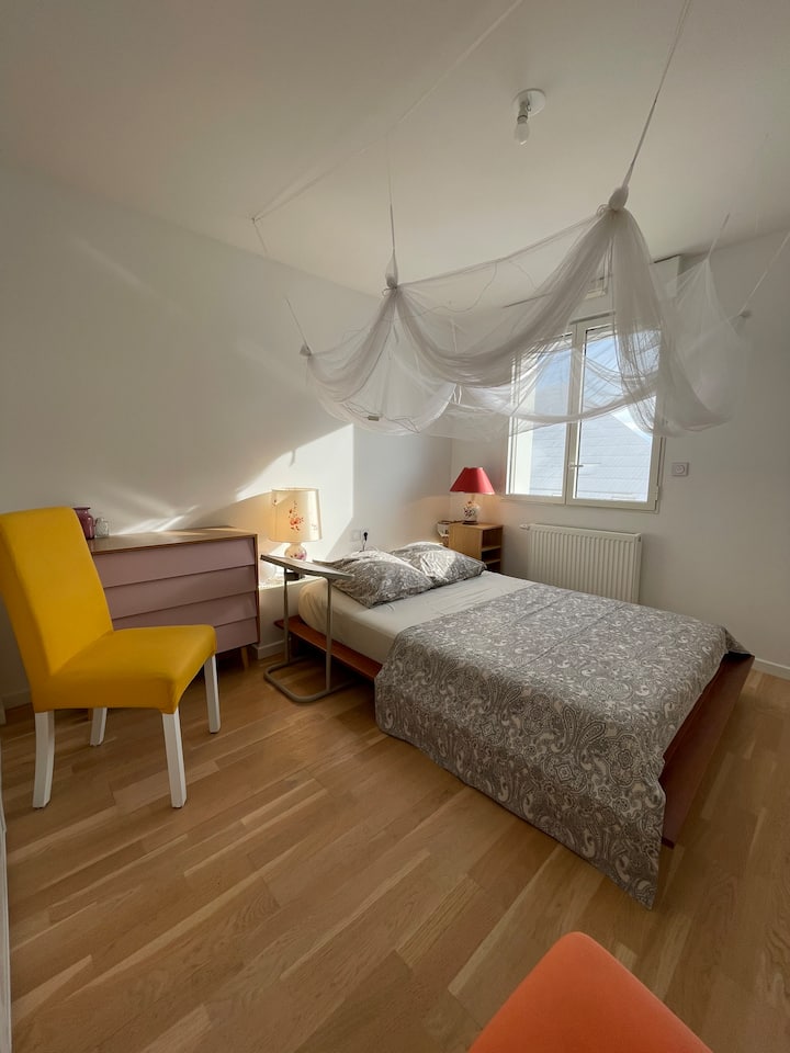 > Na najvyššom poschodí je súkromný priestor majiteľa a jedna ďalšia spálňa (nie je zahrnutá v cene). Ak si chcete rezervovať túto spálňu (celkovo 4 spálne), rezervujte si ju prostredníctvom tejto ponuky: airbnb.fr/h/queyries-4chambres