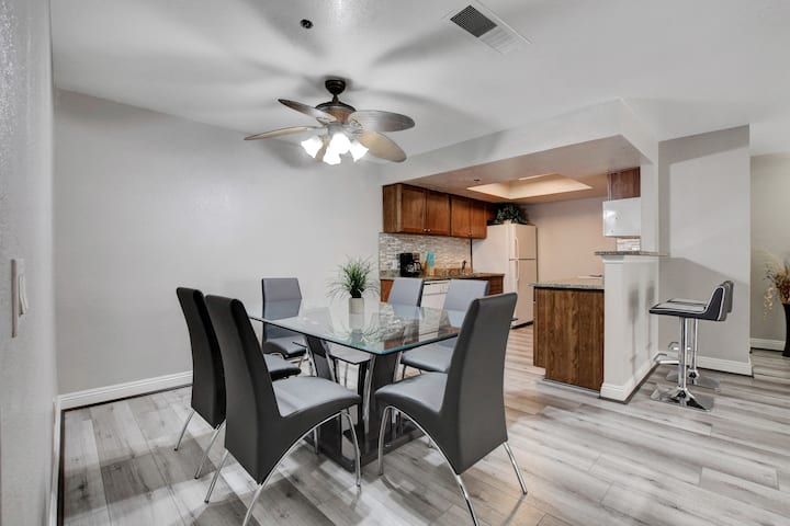 1 míľu chôdze od bulváru Las Vegas Strip Táto jednotka s 3 spálňami/ 2 kúpeľňami má všetko vybavenie, ktoré potrebujete na 1-dňový pobyt alebo 365 dní. Je zariadené, krásne a čisté. Stačí si priniesť pyžamo.