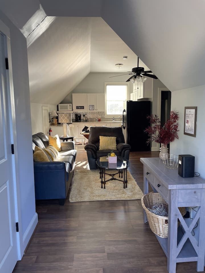 Tento pokojný štúdiový loft, ktorý sa nachádza na vrchole očarujúcej chaty, ponúka súkromné útočisko v exkluzívnej enkláve, o ktorú sa delia len tri rodiny. Objekt je zastrčený pozdĺž malebnej cesty lemovanej stromami a poskytuje pokojný únik a zároveň zostáva v pešej vzdialenosti od nemocnice WellStar Kennestone - ideálne pre zdravotníckych pracovníkov, cestovateľov alebo tých, ktorí hľadajú pokojný pobyt.