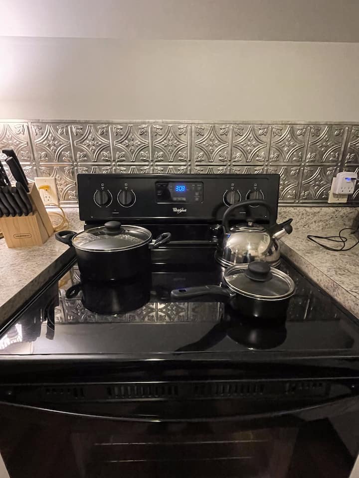 Otvorené štúdio má manželskú posteľ, kúpeľňu so sprchovacím kútom a dobre vybavenú kuchyňu so sporákom/rúrou a chladničkou. Obývací priestor je určený na relaxáciu s plyšovou koženou pohovkou a pohodlným sklápacím kreslom La-Z-Boy umiestneným pre optimálne sledovanie televízie. 50-palcová 4K HDTV so streamovacou službou Roku a obľúbenými aplikáciami vám umožňuje prihlásiť sa do svojich účtov a vychutnať si svoje obľúbené relácie.