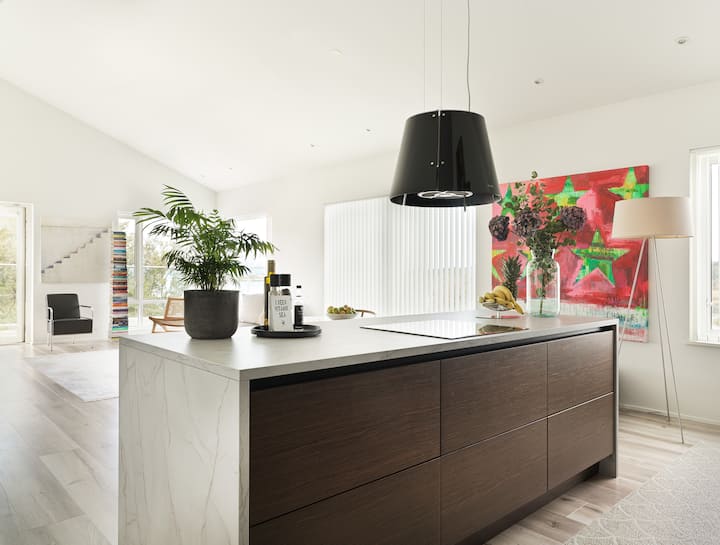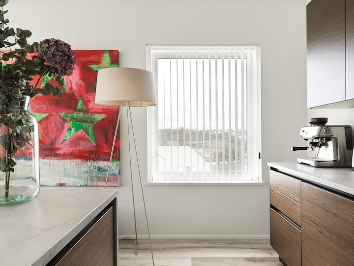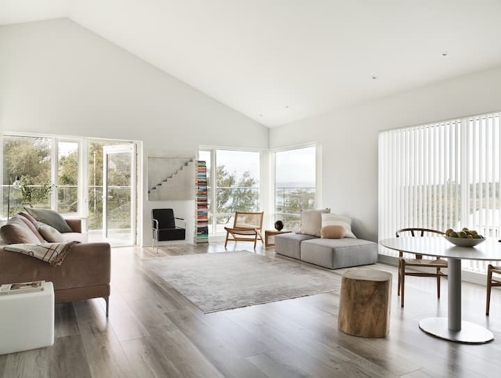 Pokúsili sme sa v celom apartmáne predstaviť podhodnotené, jednoduché, ale kvalitné luxusné materiály, aby sme sa uistili, že je celý rok príjemný a pohodlný. Dúfame, že si užijete pokojný interiér a každý meniaci sa výhľad na oceán a hory rovnako ako my.