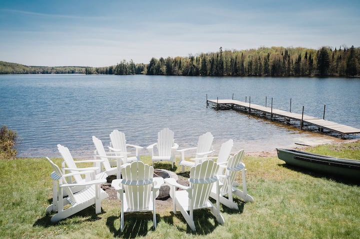 Vitajte v Eagles Landing! Táto priestranná, otvorená, luxusná chata pri jazere na nedotknutých vodách jazera Eagle Lake čaká na vás. Chata sa nachádza na súkromnom, 90 stôp širokom pozemku orientovanom na juh a hraničí s nádhernými stromami, piesočnou plážou a dostatkom priestoru na vonkajšie aktivity alebo oddych vo vírivke. Už nemusíte ďalej hľadať svoje ďalšie rodinné dobrodružstvo, únik pre páry, dovolenku s priateľmi, pobyt pri práci z domu alebo firemný výlet – táto klasická kanadská chalupa je vám k dispozícii kedykoľvek počas roka!