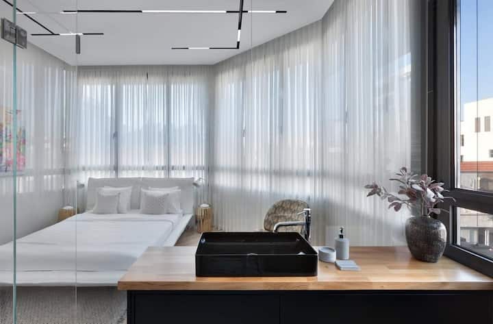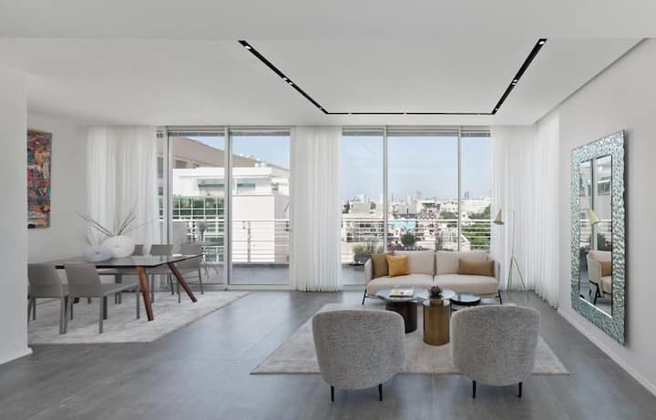 Objavte dokonalý luxusný únik v Tel Avive: jedinečný Mini-Penthouse s prvotriednou polohou, štýlom, Mamad (bezpečná izba) a vyhradeným parkovaním.