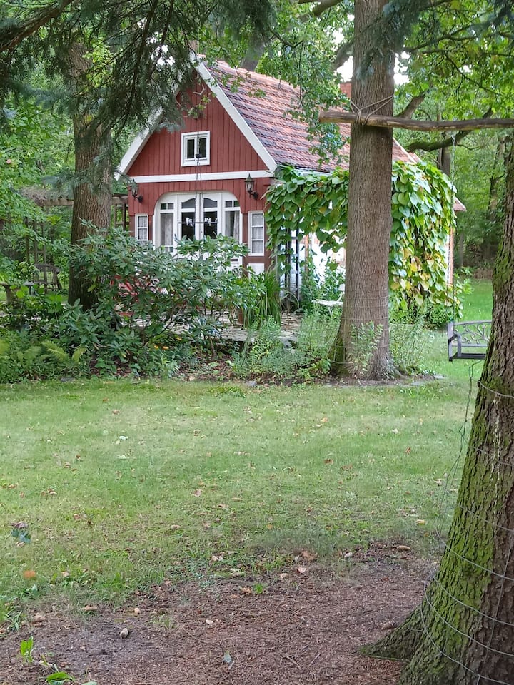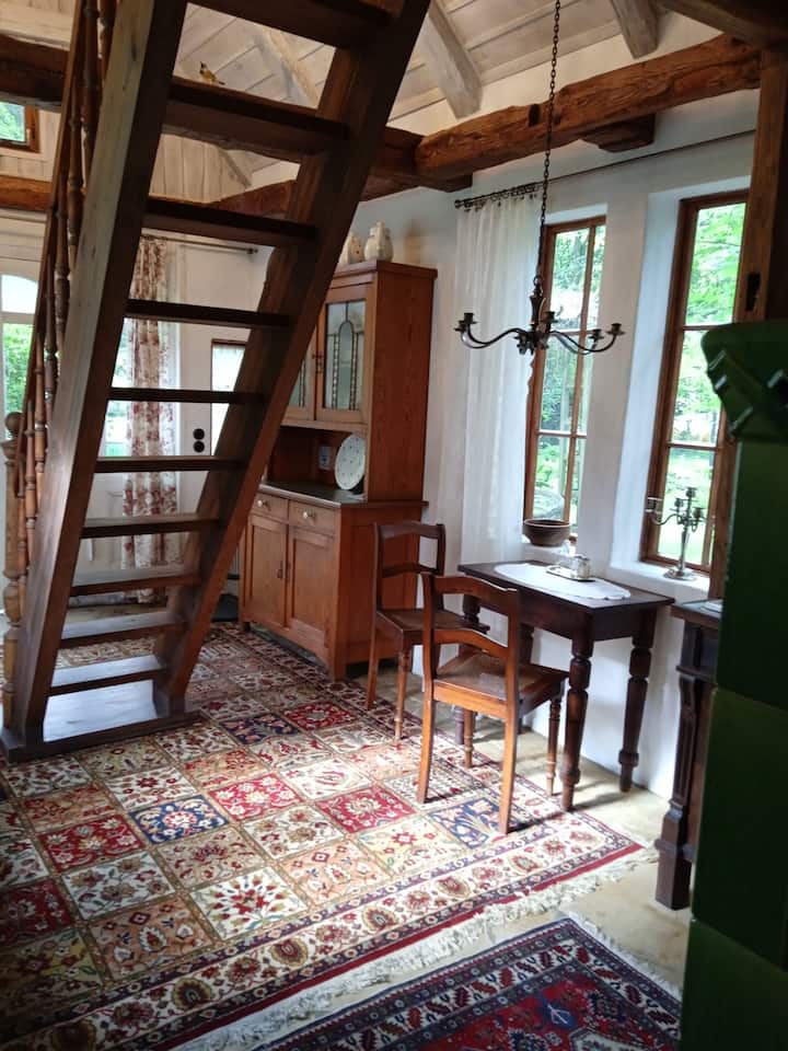 Útulná chata v parku, pri rieke Rossel.