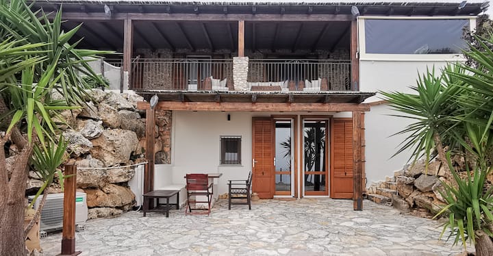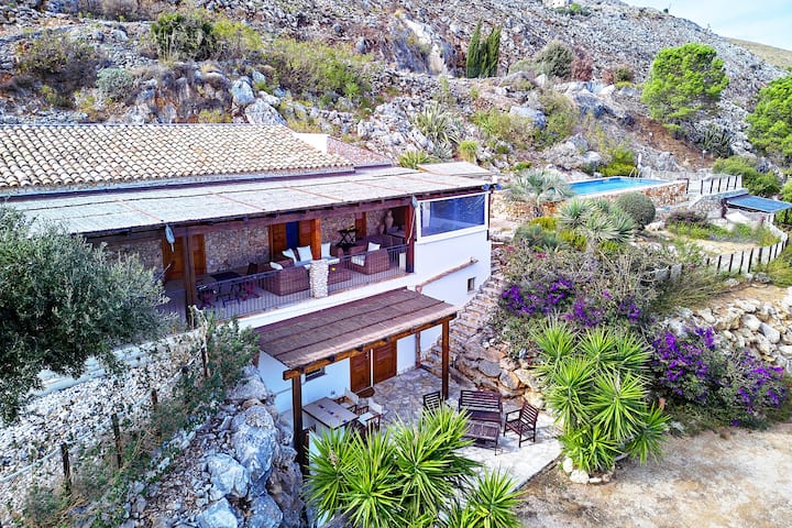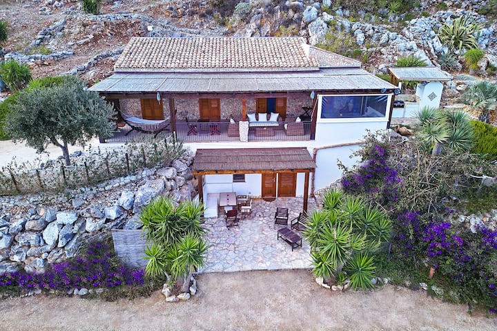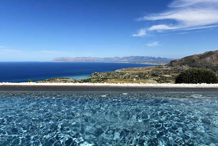 – Veľká 70 m² veranda s bambusovou strechou a panoramatickým výhľadom na celý záliv Castellammare od letiska Palermo až po záliv Guidaloca di Scopello.