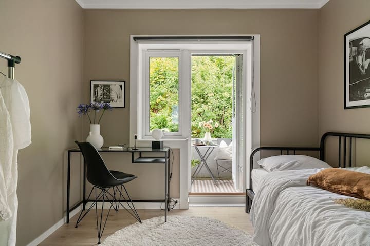 Izba s Wi-Fi, ktorá je vhodná na prácu.