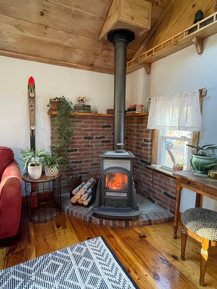 Útulná lesná chata s vnútorným krbom
