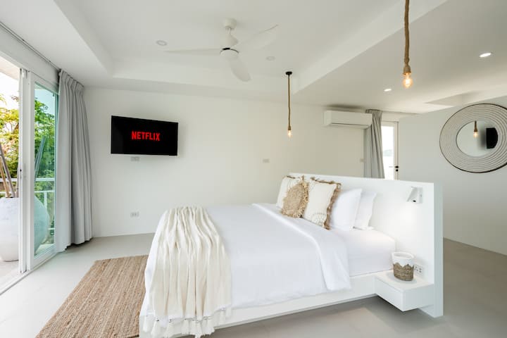 Táto jedinečná vila so 4 spálňami sa nachádza v jednej z najžiadanejších oblastí Koh Samui, úplne novej na trhu a ponúka najluxusnejšiu dostupnú dovolenkovú destináciu. Ideálne miesto pre rodiny s deťmi, priateľov aj špeciálne podujatia, s nádhernými výhľadmi, elegantným dizajnom a obrovským priestranným bývaním. Skutočne ponúka všetko, čo potrebujete na dovolenku na Koh Samui. Nachádzame sa v súkromnej rezidencii so stráženým vchodom, len 600 metrov od krásnej osamotenej pláže Thongson Bay.