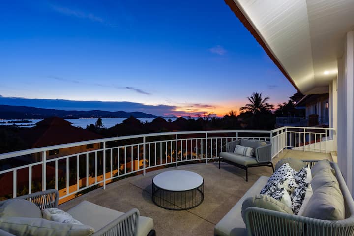Na najvyššom poschodí sú 3 vonkajšie priestory na posedenie navyše, ktoré sa nachádzajú na bočnej strane kuchyne s ďalším stolom a stoličkami, ešte jeden priestor mimo obývacej izby, sedacie vaky a potom balkón v plnej dĺžke s výhľadom na prednú záhradu domu, s viacerými stoličkami a pohovkou. Tu nájdete ešte viac ohromujúci výhľad na more, s výhľadom na slávny chrám Big Buddha - krásne miesto, kde si môžete vychutnať rannú kávu.