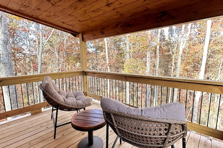 Útulné útočisko v blízkosti rieky Toccoa, centra mesta a jazera