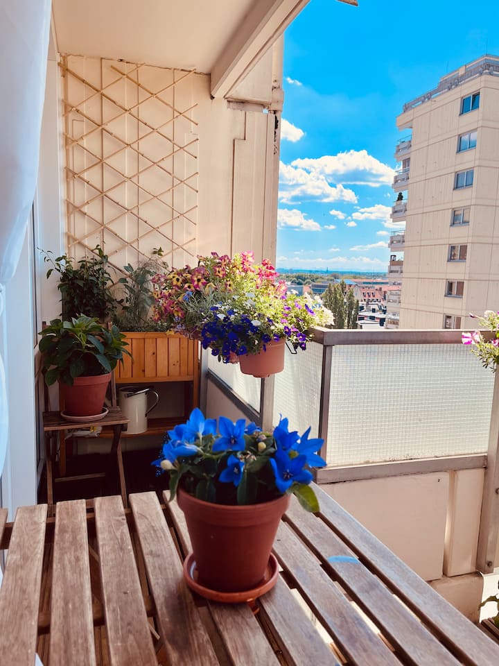 Svetlá garsónka: Balkón a skvelý výhľad – Theresienwiese