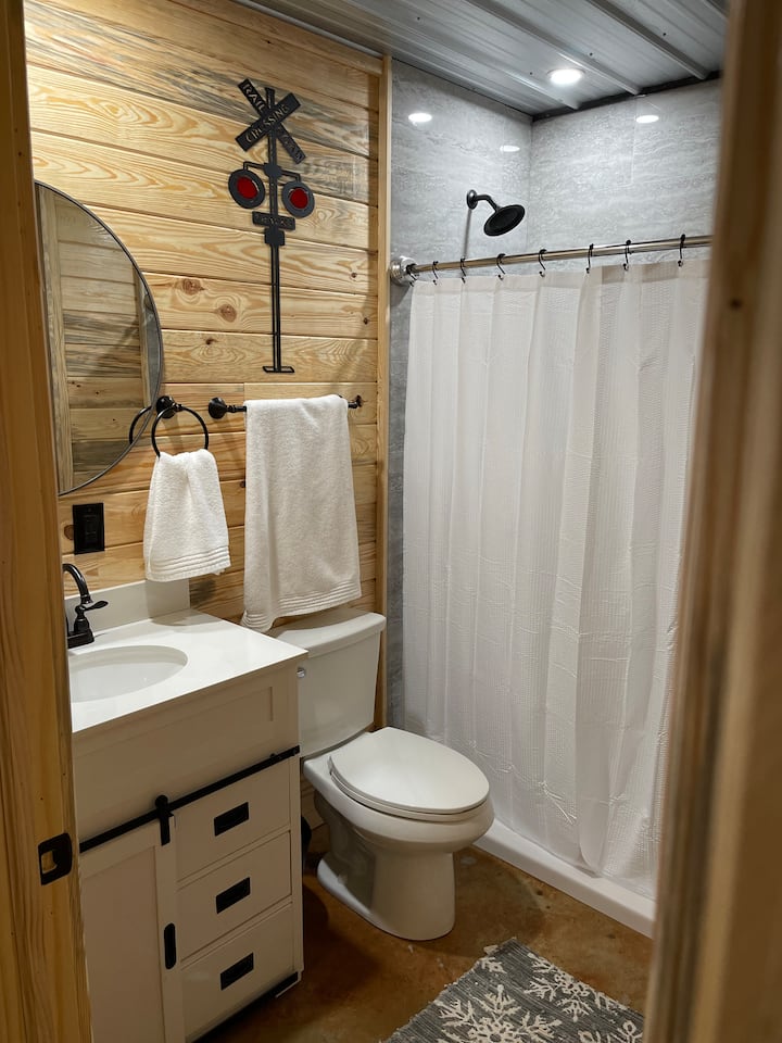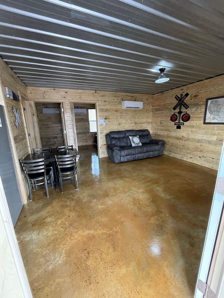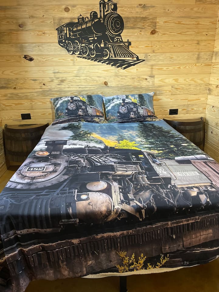Zrub Bourbon Railroad v blízkosti ranča Blue Springs