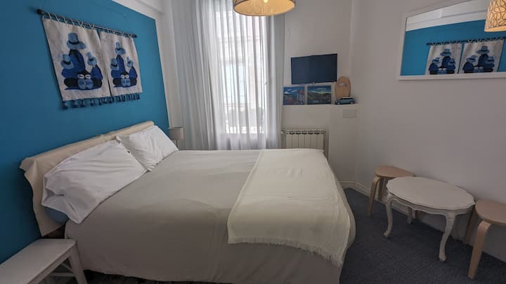Francúzska posteľ, celý matrac má dĺžku 1,40 m a dĺžku 1,90 m. Pridávam „kompaktný“ kútik s chladničkou, mikrovlnnou rúrou, rýchlovarnou kanvicou a nespresso. Vlastná kúpeľňa je napojená na izbu (nie je tu bidet) a má 85/90 sprchovací kút, umývadlo, WC a sušič vlasov.