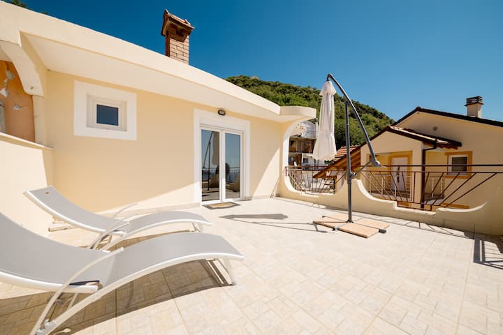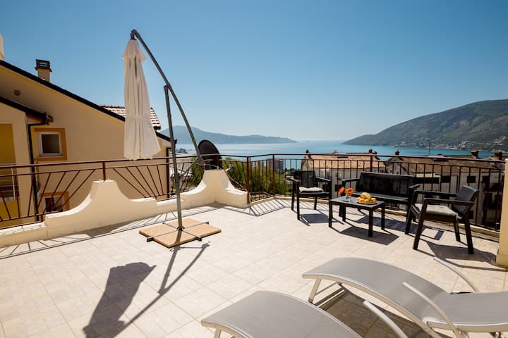Útulný apartmán s výhľadom na more a balkónom v Igalo