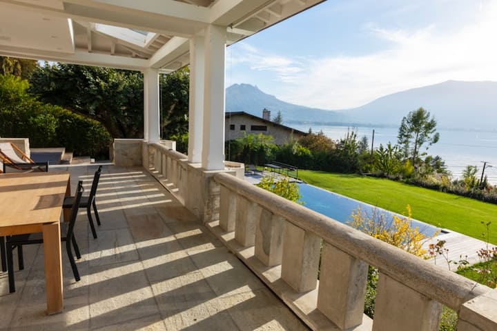 Villa Rose je štýlová krásne zrekonštruovaná vila so súkromným prístupom k jazeru 2mn chôdze od domu, ohromujúcim výhľadom na jazero a hory a veľkým súkromným bazénom, ideálnym miestom na pokojnú a relaxačnú dovolenku pozdĺž ohromujúceho jazera Annecy. Okrem toho, že si užívate bazén a rozsiahle a dokonale udržiavané pozemky a terasy, budete rozmaznaní výberom aktivít; vodné športy, tenis, cyklistika, pešia trasa/beh, paragliding, golf a mnoho ďalšieho.