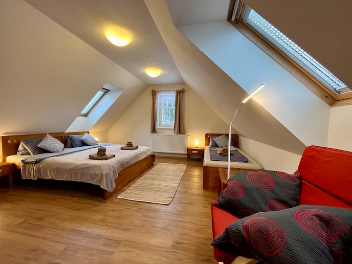 Apartmán v roubenej chalupě s reštauráciou a wellness