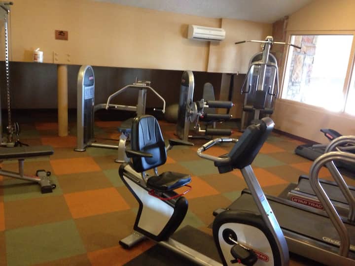 Dobre si zacvičte, veď sú tu k dispozícii bežecký pás, stacionárny bicykel a činky. Prečo to nevyužiť?