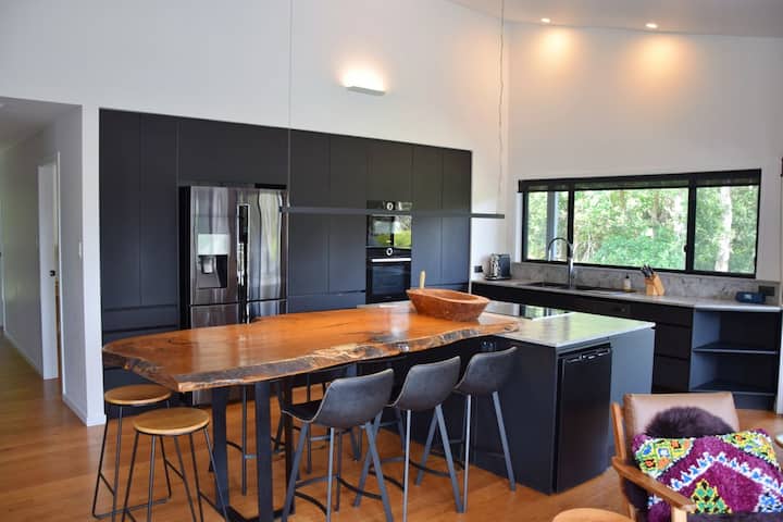 Zaparkujte svoje autá vo veľkej dvojitej garáži, zaplávajte si v potoku priamo pred domom alebo sa prejdite cez lávku na surfovaciu pláž (chodník k mostu pre peších je pred domom). Navštívte bowlingový klub na večeru alebo obchody na rohu a doplňte zásoby.