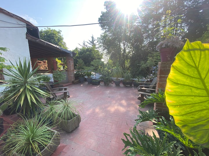Veľmi veľká izba s vlastnou kúpeľňou s vaňou, záhrada