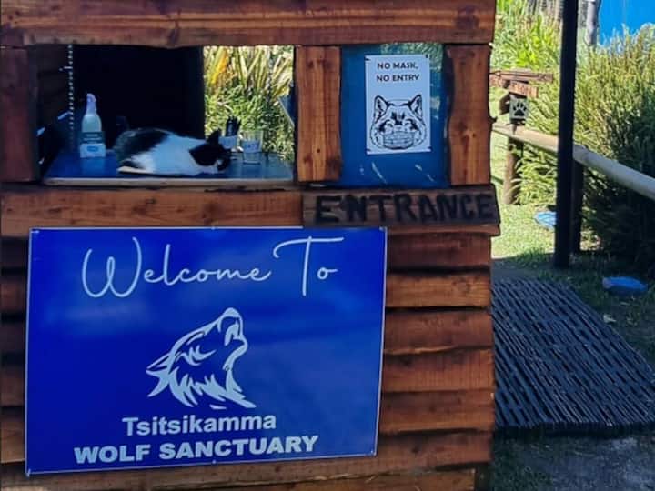 The Sanctuary je fungujúca farma a je otvorená pre verejnosť 7 dní v týždni okrem Vianoc a Nového roka. Ubytovanie v Sanctuary je súčasťou našich programov udržateľnosti, pretože Sanctuary je registrovaná nezisková organizácia s jediným cieľom starať sa o vlky, ktorí sa stali obeťou obchodu s exotickými domácimi zvieratami v SA. Ubytovacie jednotky sú v svätyni, preto môžete vidieť niektorých ľudí počas pracovných hodín a my sme neustále zaneprázdnení našimi každodennými povinnosťami týkajúcimi sa starostlivosti o vlky. Príležitostne sa tu nachádzajú aj iné zvieratá, ako sú kurčatá, nafúkaný kohút, mačky, pár somárov a husi. Sú pre nás súčasťou rodiny, ale môžu byť pre ostatných trochu hlučné.
