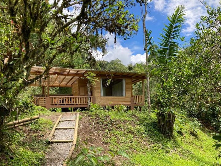 Celý objekt: zrub v lokalite Mindo, Ekvádor