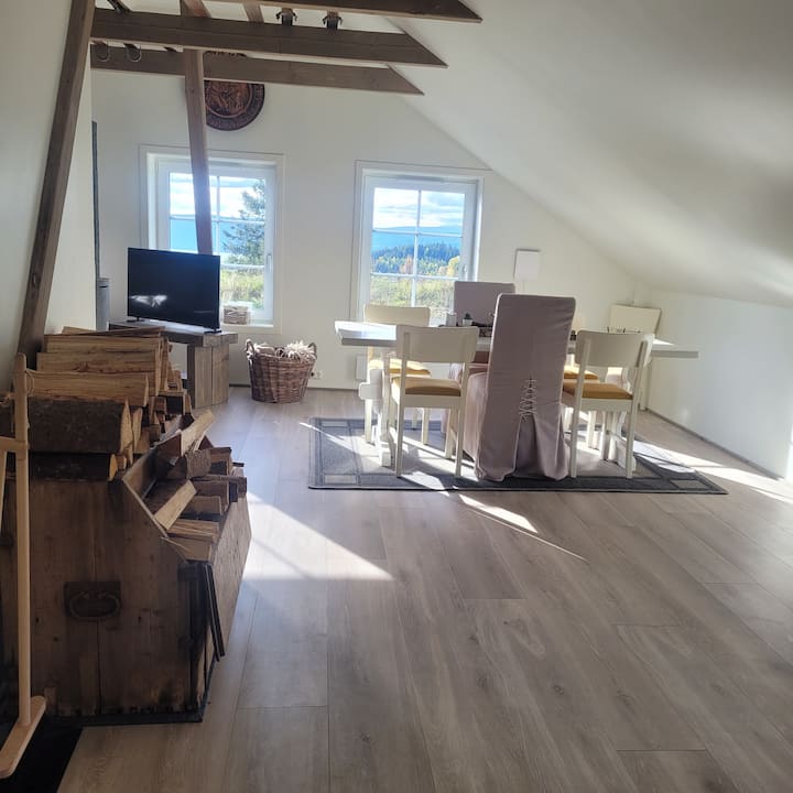 Úplne nový apartmán s výhľadom na Randsfjord a prírodnú krajinu v Hadelande. Okrem utierok a sklenených uterákov atď. máme aj posteľnú bielizeň a uteráky. Apartmán sa nachádza na 2. poschodí. Obsahuje chodbu, veľkú kúpeľňu so sprchovacím kútom, WC, umývadlom a práčkou. Veľká kuchyňa so sporákom, sporákom, chladničkou, mikrovlnnou rúrou, ako aj veľkým priestorom na varenie. 3 priestranné spálne a všetky majú úložný priestor na oblečenie, spálňa 1: manželská posteľ, spálňa 2: manželská posteľ, spálňa 3: jednolôžko.