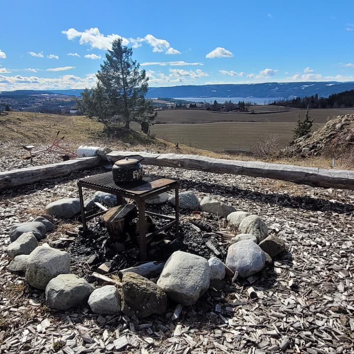 Úžasné miesto na grilovanie s výhľadom na Randsfjorden a vidiek.