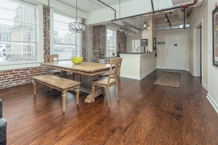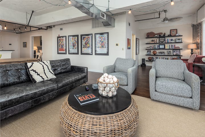 Užite si pobyt v Memphise s vedomím, že ste doslova v pešej vzdialenosti od Beale Street, svetoznámeho grilu Rendezvous, FedEx Forum, Sun Studio, Národného múzea občianskych práv a hotela Peabody. Najlepšie zo všetkého je, že môžete sledovať bejzbalový zápas Redbirds alebo futbalový zápas 901 FC priamo z okna tejto jednotky. Ak budete mať to šťastie a rezervujete si sobotňajší zápas Redbirds, budete mať detailný pohľad na úžasný ohňostroj. (Garážové parkovanie s jedným voľným priestorom v garáži pri budove.)