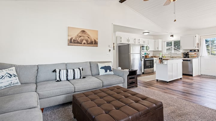 Overlook Nook vás pozýva zostať na jednu alebo dve noci, ale chcete zostať oveľa dlhšie. Norm tu nie je slovo, kde nájdete nenápadné prvky, aby bola vaša návšteva príjemnejšia so všetkým, od podložiek na jogu až po granolové bary až po najnovšie stolové hry a DVD a vynikajúcu knižnicu „Darujte knihu, vezmite si knihu“. Moderné osvetlenie a dobre premyslená kuchyňa, stanica na ostrove v centre mesta a moderná jedáleň poskytujú atmosféru funkčnosti priestoru. Okrem toho je jeho otvorený pôdorys navrhnutý tak, aby prebiehali konverzácie. Vždy s ohľadom na hosťa. Na terase čaká plynový gril, veľké vonkajšie posedenie, rockery a vírivka. Taký je úžasný výhľad. Ohnisko s nadrozmernými stoličkami Adirondack vás privíta domov, aby ste mohli sedieť pod hviezdami, ktoré navštevujú s priateľmi.