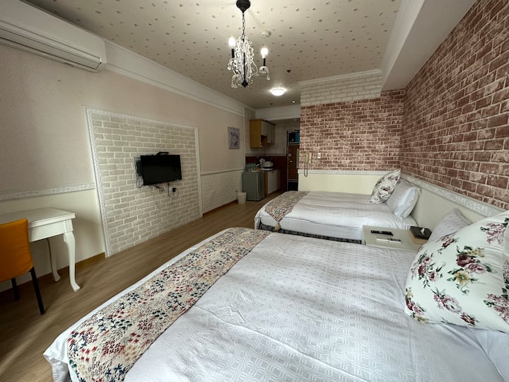 Big push! Twin view balcony quadruple room/downtown/next to Sando shopping district/next to Sando shopping district/next to exhibition hall
