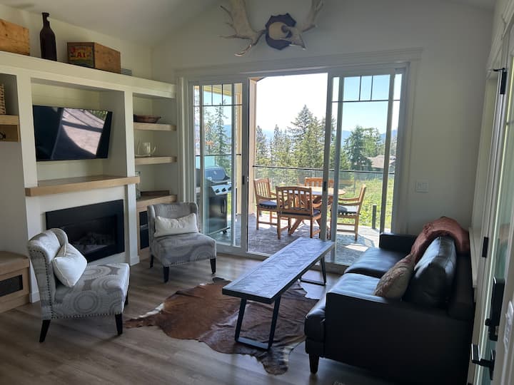 Tento nový apartmán sme postavili tak, aby vyhovoval rodinám - a slúžili sme ako krátkodobý dovolenkový prenájom . Máme malú vinicu a veľkú krajinu, ktorá nás zamestnáva . Milujeme tu byť v lete a radi si užívame dlhšie sviatky v zime .