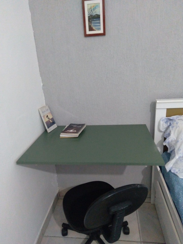 Ako sme už spomenuli, sme v štvrti Vila Augusta, čo je najlepšie miesto v našom meste, a pre tých, ktorí prichádzajú zo São Paula po diaľnici Presidente Dutra, je to prvá štvrť prakticky. V okolí máme veľa možností voľného času... okrem vynikajúcich reštaurácií, bister, krčiem, nákupných centier a mnohých ďalších obchodov, ktoré sú veľmi blízko nášho domova. A medzinárodné letisko Guarulhos je od 15 do 20 minút jazdy autom, stačí vstúpiť do Dutra a potom Hélio Schmidt rdov, ktorý končí na letisku. Je to veľmi jednoduché a rýchle. Pokiaľ ide o náš domov, plánujeme dokončiť ďalšie štúdio, dokonca o niečo väčšie, aby sme časom mohli slúžiť viac hosťom. Naše aktuálne bývanie je každý deň kompletnejšie. Úplne nová 32-palcová inteligentná televízia pri posteli... staré zvukové zariadenie, ktoré si môžete vychutnať rádio pri príprave jedla. Malá kuchyňa, ktorá je skutočným šarmom. Ale niečo chýba, aby to bolo úplnejšie, vy.