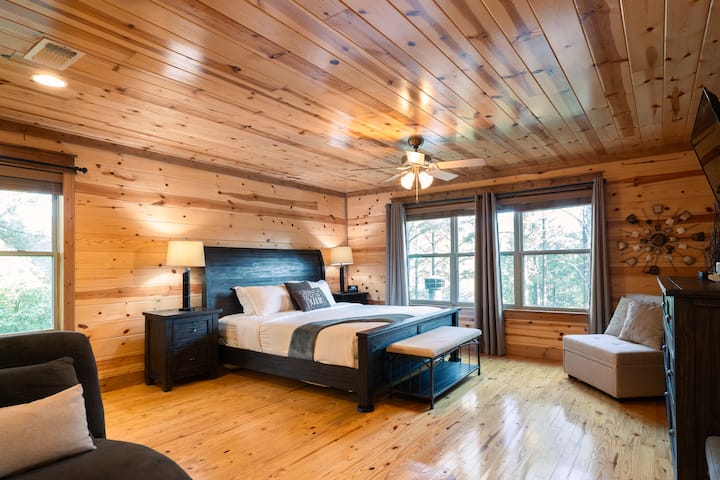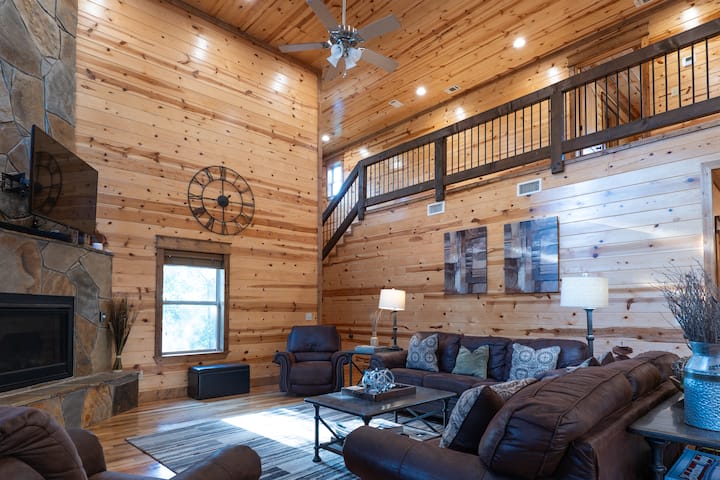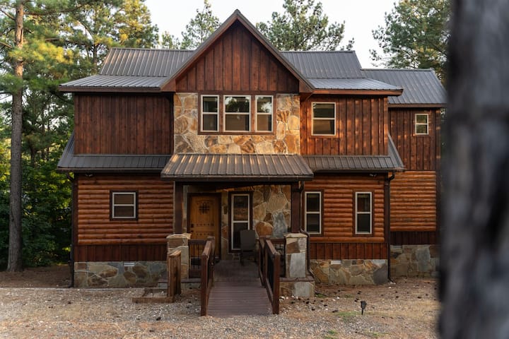 Vstúpte do našej chaty a zažite rustikálny šarm a modernú eleganciu. Heaven Sent má tri nadrozmerné spálne s manželskou posteľou King, útulnú rozkladaciu pohovku a tri kúpeľne s toaletou. Užite si plne zásobenú kuchyňu, vlastnú arkádu, stolové hry a vysokorýchlostný internet. Oddýchnite si na nádhernej terase, v bublajúcej vírivke alebo pri potoku. Domáce zvieratá sú vítané! Heaven Sent sa nachádza v blízkosti najlepších atrakcií v Hochatowne a je ideálnym útočiskom na relaxáciu a dobrodružstvo. Rezervujte si svoj pobyt ešte dnes!