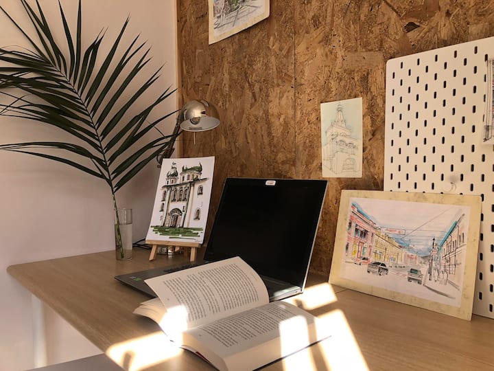 Spoločný priestor s Wi-Fi, ktorý je vhodný na prácu.