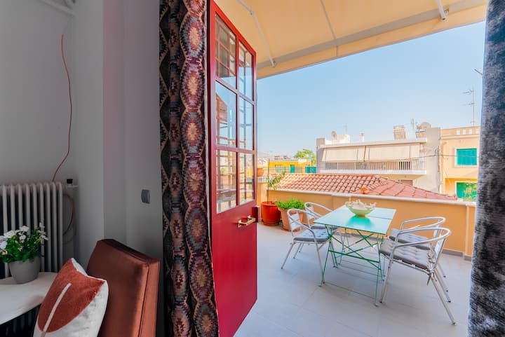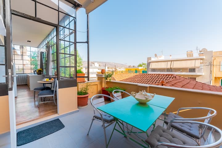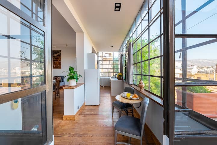 Priestranný 2-spálňový apartmán na kopci Filopappou v Koukaki!