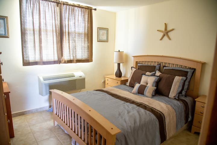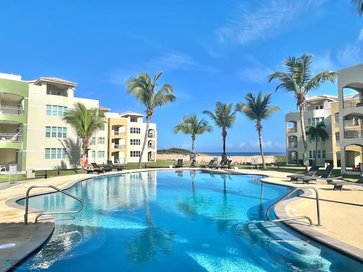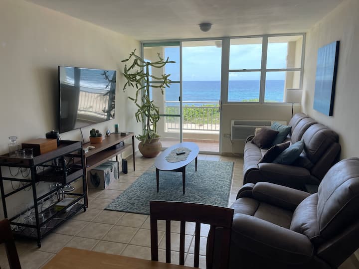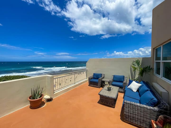 Toto je môj osobný, 3-spálňový penthouse pri oceáne – môj 2-podlažný kúsok raja, v ktorom žijem časť roka a prenajímam ho, keď cestujem. Ponúka panoramatický výhľad, súkromnú strešnú terasu, bazén a priamy prístup na pláž. Nachádza sa len pár minút chôdze od pláže Jobos a Shacks, stánkov s jedlom a barov. 15 minút od Crashboatu a 10 minút od letiska BQN.