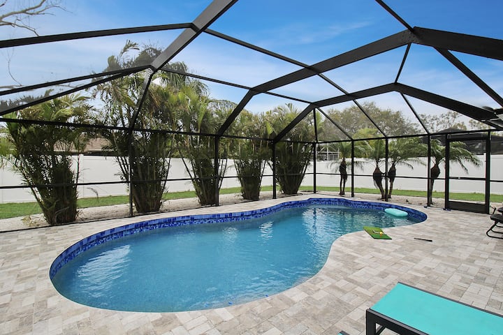 Vitajte v Dreams of Paradise! Tento ohromujúci súkromný dom s bazénom so 4 spálňami a 2 kúpeľňami v West Bradentone ponúka luxusnú zmes pohodlia, štýlu a relaxácie. Len pár minút od ostrova Anna Maria a akadémie IMG si môžete vychutnať pokoj na pláži a prvotriedne zariadenia. Bývanie ponúka gurmánsku kuchyňu, otvorený obytný priestor a presklený lanai s šumivým bazénom a tropickou záhradou. Primárny apartmán sa môže pochváliť šatníkom a kúpeľňou v štýle kúpeľov.