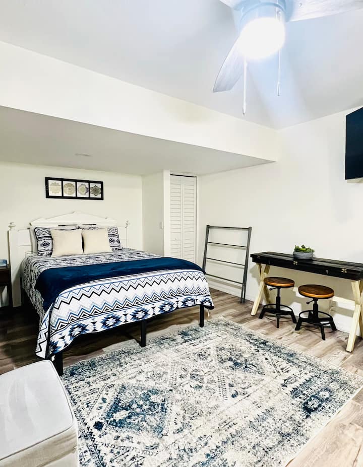 Izba s Wi-Fi, ktorá je vhodná na prácu.