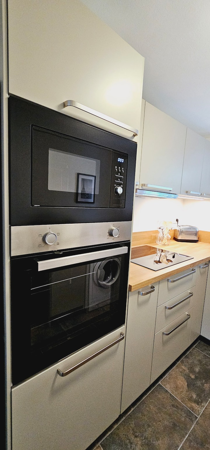 Plne vybavená kuchyňa vám umožní pripraviť si lahodné domáce jedlá. Má práčku/sušičku, umývačku riadu, varnú dosku, chladničku/mrazničku, rúru, mikrovlnnú rúru, hriankovač, rýchlovarnú kanvicu, kávovar Nespresso, ako aj všetko náčinie potrebné na prípravu dobrých domácich jedál.