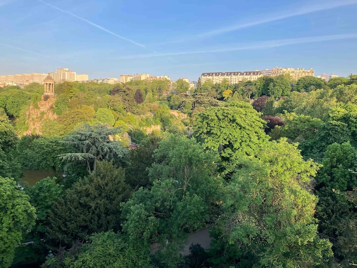 Panoramatický výhľad na Buttes Chaumont a Montmartre