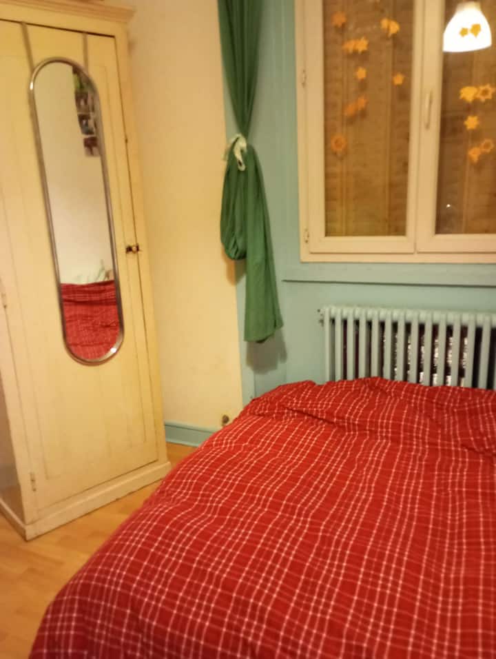 Spálňa s manželskou posteľou v blízkosti Mail/priamo pri vlakovej stanici (autobus 11)
