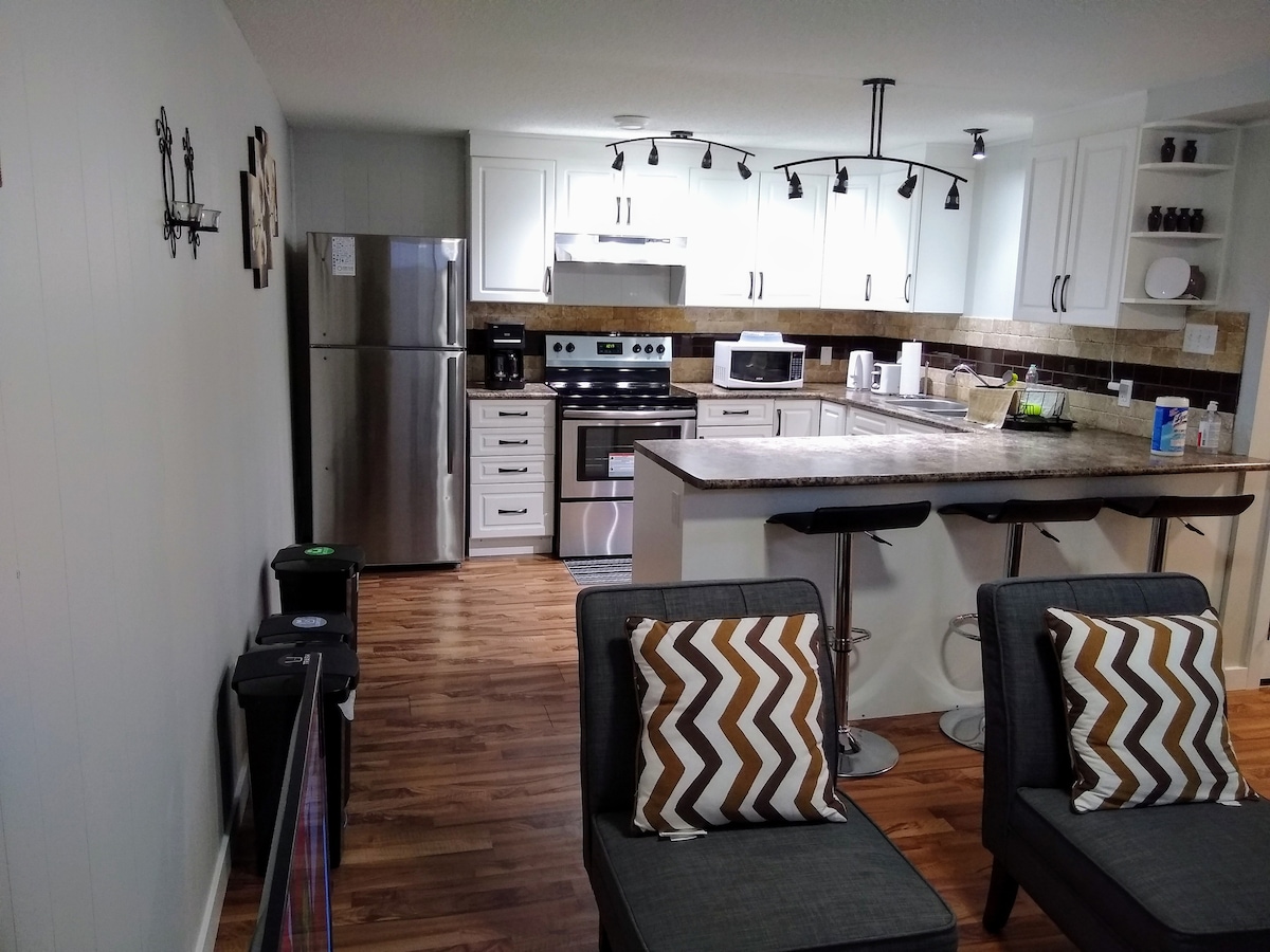 Úplne nový a moderný suterénny apartmán vysoký 9 ft s vlastným bočným vchodom, vlastnou kúpeľňou a kuchynským kútom. Ide o hotelovú izbu v úplne novom dvojdomovom centre v štvrti Allendale. 2 minúty chôdze od verejnej dopravy, 9 minút jazdy od Whyte Ave, 5 minút od UofA, 10 minút od centra mesta, 7 minút od nákupného centra Southgate Mall, 13 minút od WEM, 22 minút jazdy od letiska. Táto poloha je prístupná hlavným diaľniciam a mnohým zariadeniam, ktoré vám umožnia vychutnať si to najlepšie z Edmontonu!